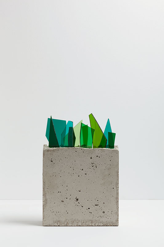 In almost every city I have visited, I have at some point come across a mid-height wall topped-off with shards of broken coloured glass set in concrete. That observation was the starting point for these sculptures.